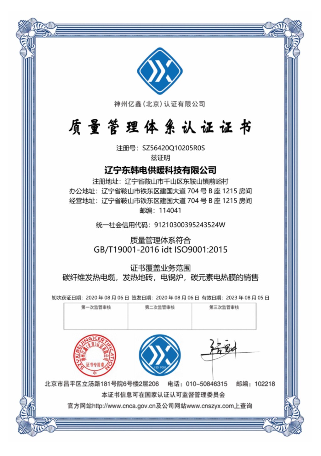質(zhì)量管理體系認(rèn)證證書(shū)